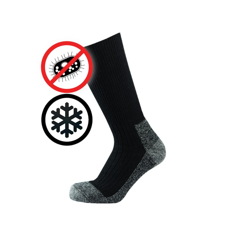 Teplé vlněné outdoorové termo ponožky s antibakteriální úpravou, která obsahuje nano částice stříbra. Zesílené froté zóny v chodidle pro vysoký termoizolační efekt. Ponožky jsou speciálně vyvinuté pro menší fyzickou zátěž a do méně náročných podmínek do vysoké obuvi, outdoorových bot i holin.